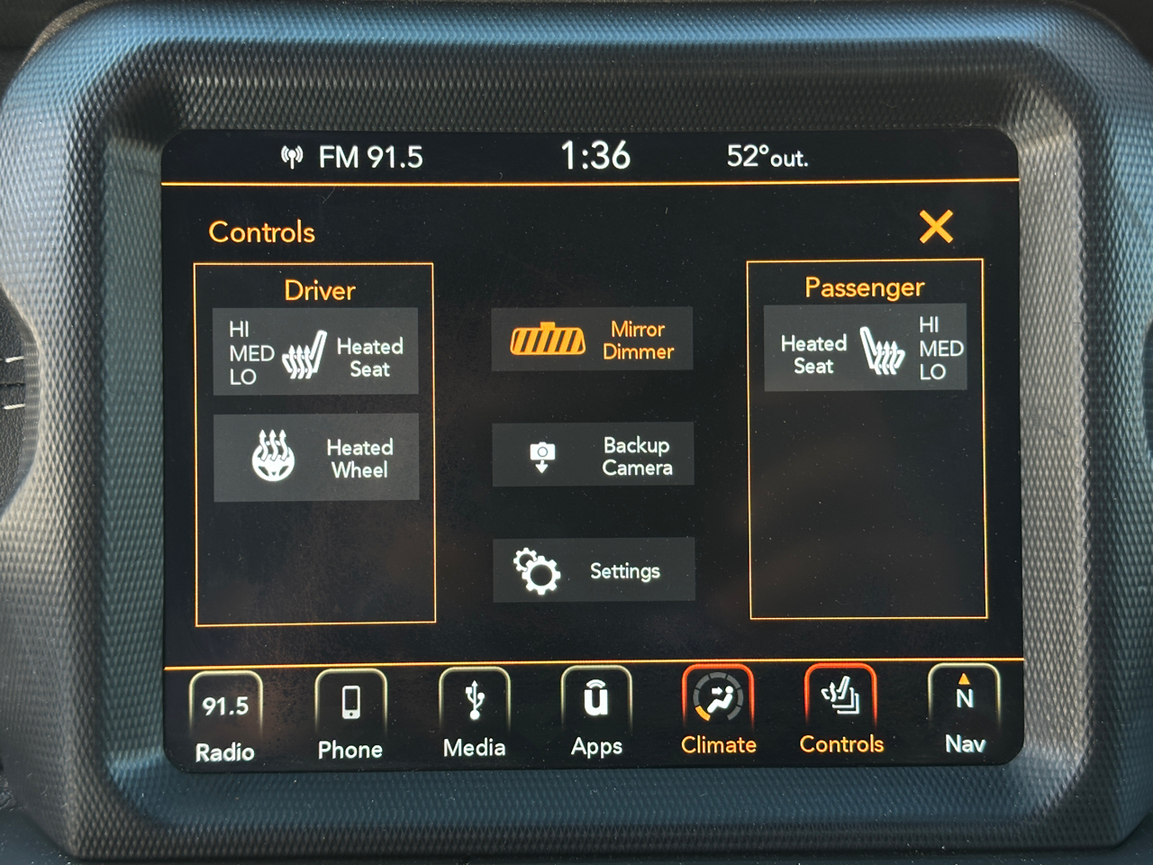 • Radio w/Seek-Scan, Clock, Speed Compensated Volume Control, Aux Audio Input Jack, Steering Wheel Controls, Voice Activation, Radio Data System and Uconnect External Memory Control